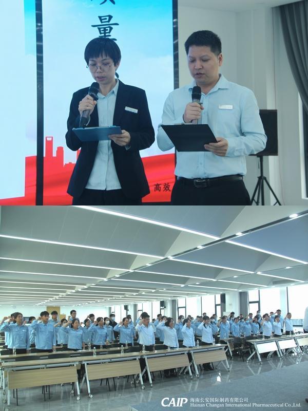 啟動(dòng)儀式上,長(zhǎng)安制藥質(zhì)量總監(jiān)溫小東及質(zhì)量受權(quán)人楊零九通過(guò)培訓(xùn)賦能全員。